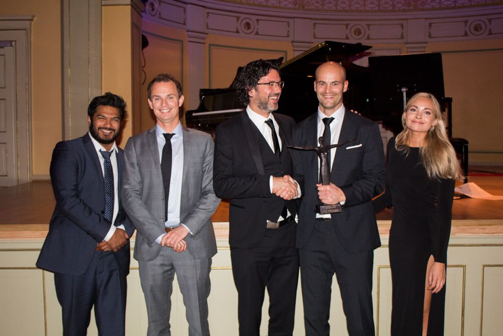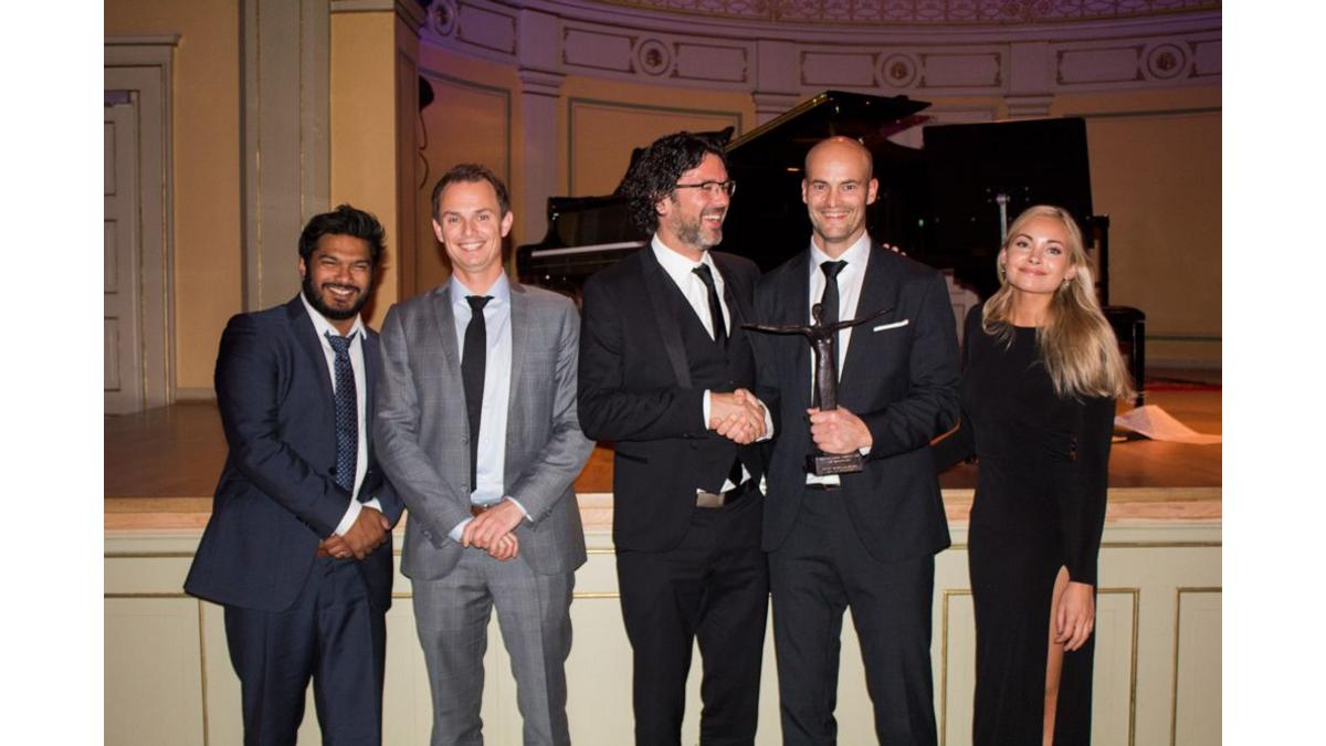 The Fransk-Norsk Trophée 2016 was awarded to eZ Systems. The French-Norwegian Chamber of Commerce and its partner Air France-KLM handed over the symbolic bronze statue to Aleksander Farstad, CEO of the company, and his team, Bertrand Maugain, Eiren Birkeland and Abdul Zamir.