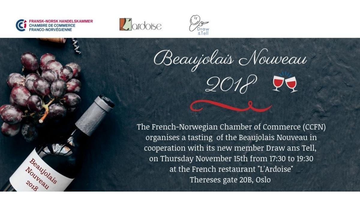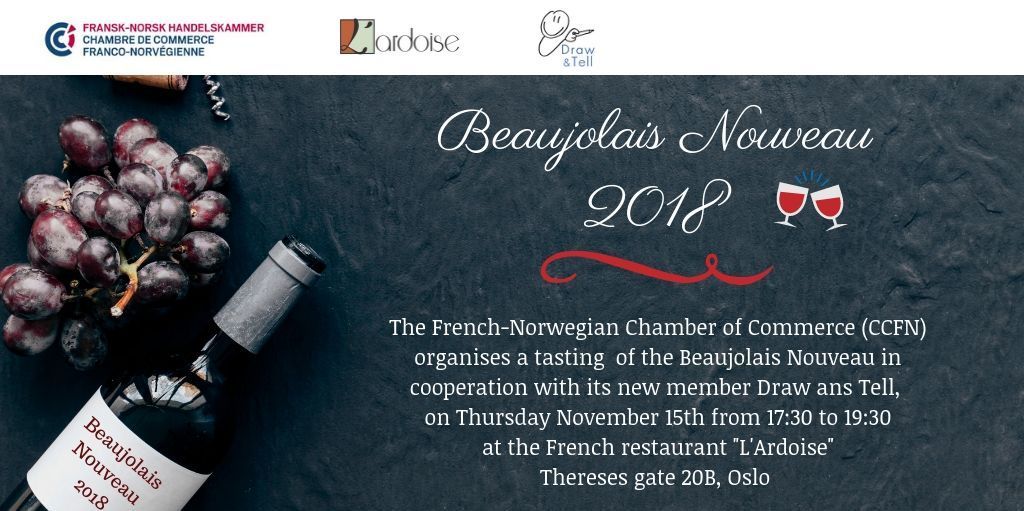 On the 15th of November, the French-Norwegian Chamber of Commerce organized a Beaujolais Nouveau tasting in cooperation with the restaurant l’Ardoise and Draw and Tell.