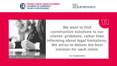 We are very pleased to welcome RO SOMMERNES ADVOKATFIRMA DA as a member of the French-Norwegian Chamber of Commerce.