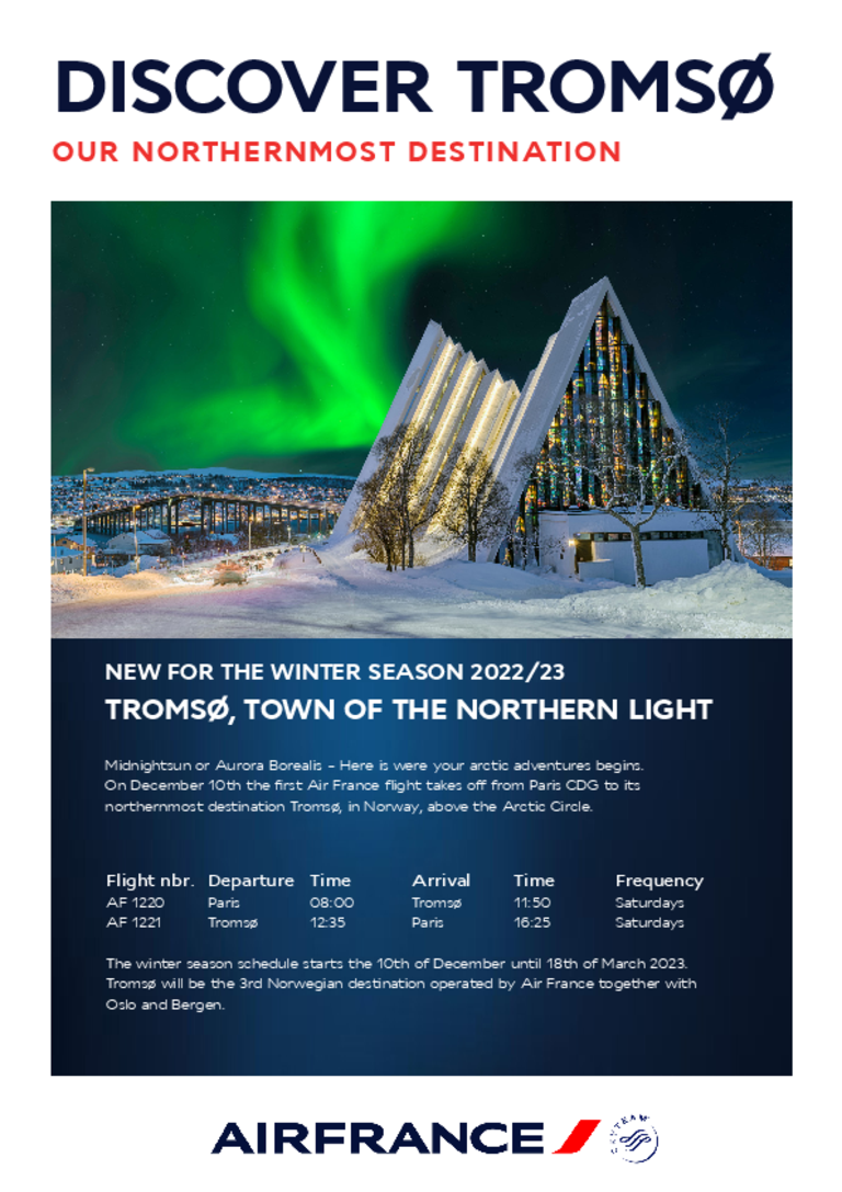 On December 10th the first Air France flight takes off from Paris CDG to its northernmost destination Tromsø, in Norway, above the Arctic Circle.