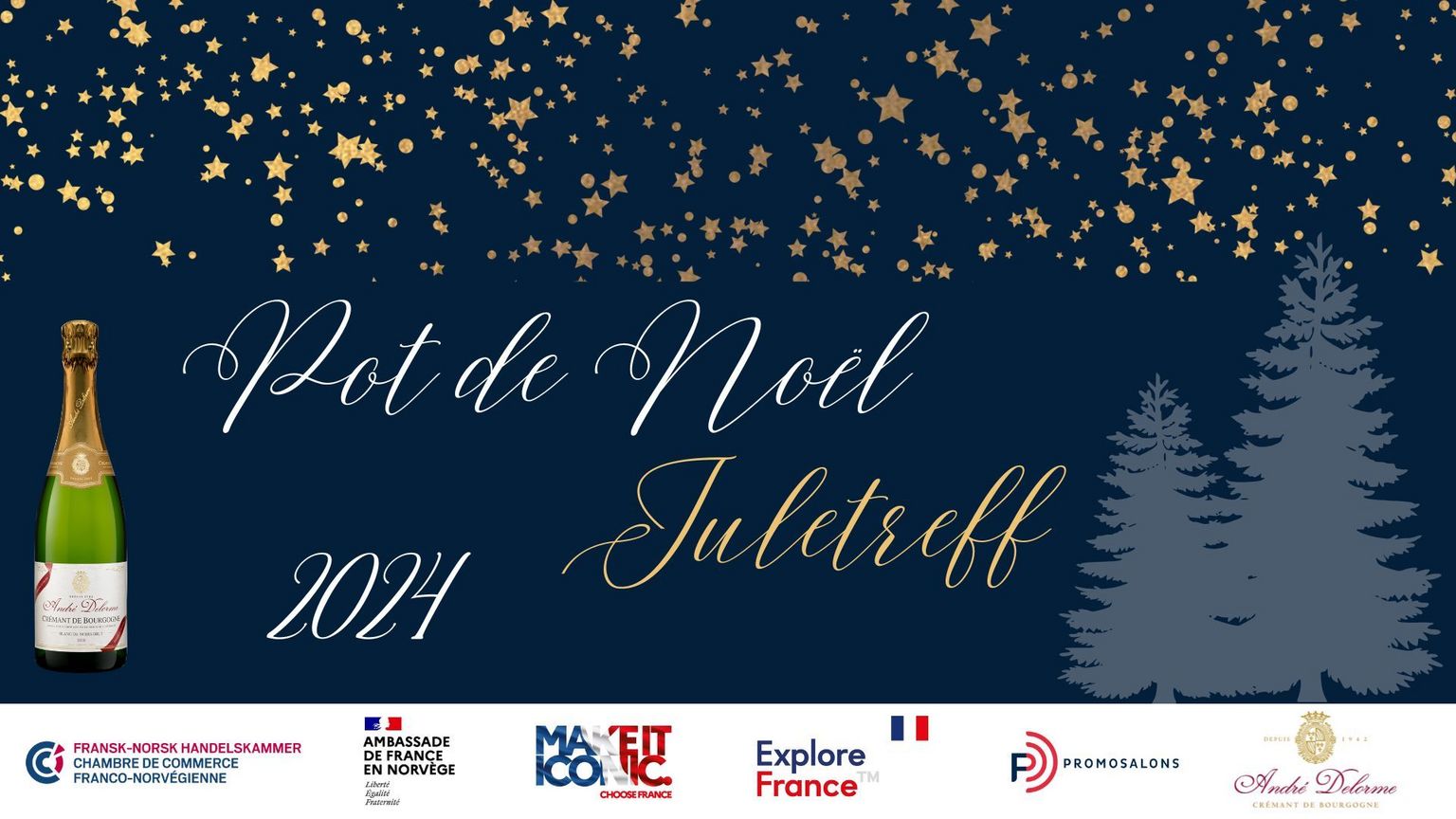H.E. Mrs. Florence Robine, French Ambassador to Norway, is pleased to invite you to the Christmas cocktail organized in cooperation with the French-Norwegian Chamber of Commerce, Atout France, Promosalons and André Delorme.