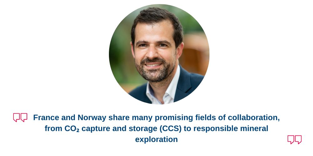 France and Norway share many promising fields of collaboration, from CO₂ capture and storage (CCS) to responsible mineral exploration. There is also great potential in joint R&D around drilling technologies, geophysical data acquisition, artificial intelligence, and other subsurface-related innovations developed by leading research centers and universities in both countries.